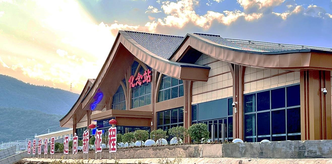 2.化念站位于玉溪市峨山縣化念鎮(zhèn)東北側(cè),距鎮(zhèn)中心約3.0公里?;钫緸榫€側(cè)下式站房,總建筑面積1500平方米,地上1層,最高聚集人數(shù)300人。旅客乘降站臺2座、到發(fā)線3條。設(shè)有重點旅客候車區(qū)。采用驗檢合一、進(jìn)出站合一的進(jìn)出站檢票模式。