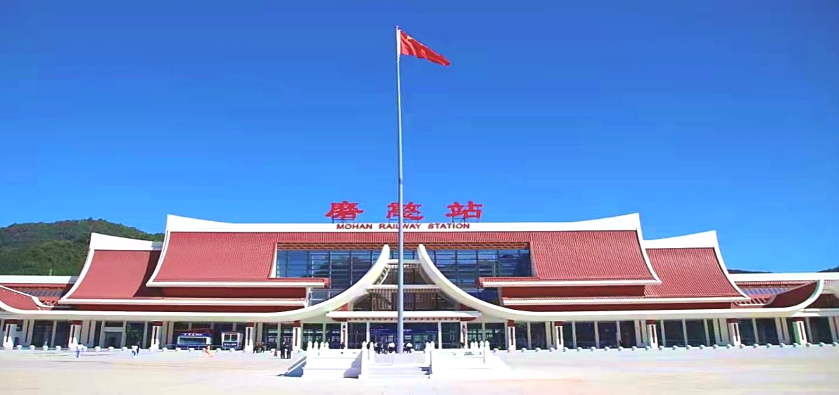10.勐臘站位于云南省西雙版納傣族自治州勐臘縣勐臘鎮(zhèn)靠城市西側(cè),距離縣城中心約2公里。勐臘站為線側(cè)下式站房,站房建筑面積2979平方米,地上1層,最高聚集人數(shù)600人,站房。旅客乘降的站臺1座、到發(fā)線1條。采用驗檢合一的進(jìn)站檢票模式。設(shè)母嬰候車室及重點旅客候車區(qū)。
