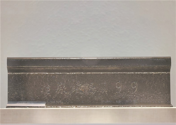 該博物館展出的1899年漢陽鐵廠生產(chǎn)的85磅鋼軌。王澤華 攝