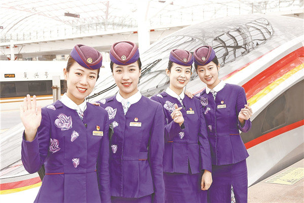 “春風得意馬蹄疾,一日看盡長安花。”唐代詩人孟郊的美好期盼,在千年之后成為現實。煥然一新的車廂環(huán)境、一日千里的運行速度、詮釋著不同地域特色的鐵路制服,令“中國高鐵”這張名片愈發(fā)亮麗。年輕的“動哥”“動姐”穿著青春時尚的鐵路制服,吸引萬千旅客目光。時代感、國際范兒逐漸成為高鐵時代新式鐵路制服的特色。