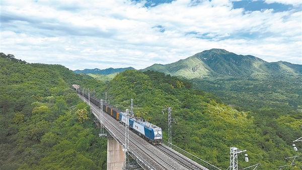 連日來(lái),我國(guó)多地迎來(lái)降雨天氣。中國(guó)鐵路太原局集團(tuán)有限公司緊盯雨情汛情,加強(qiáng)對(duì)關(guān)鍵處所和關(guān)鍵部位的巡視檢查,及時(shí)發(fā)現(xiàn)并處置安全隱患,為迎峰度夏電煤保供運(yùn)輸提供可靠保障。圖為近日,雨后初晴,一列2萬(wàn)噸重載電煤列車(chē)行駛在大秦鐵路延慶北至下莊區(qū)間。葉春蕾 攝